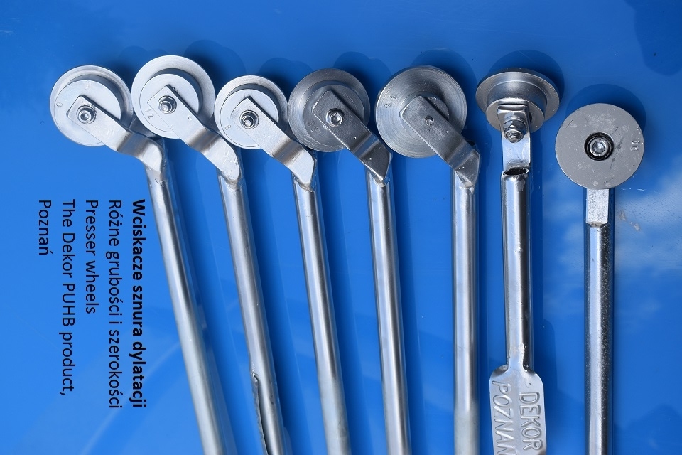 Produkujemy także wciskacze sznura dylatacji, czyszczarki nacięć dylatacji, frezarki do fazowania nacięć dylatacji w kilku rodzajach, zacieraczki i dyski do betonu